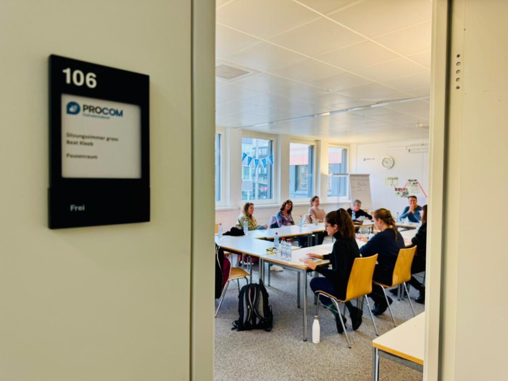 C’est avec beaucoup d’enthousiasme qu’une délégation de la BFSUG s’est rendue le 5 novembre 2025 à Olten, au siège de la Fondation PROCOM. Dès leur arrivée, on sentait clairement : ici, on travaille avec passion pour rendre la communication entre personnes entendantes et personnes sourdes encore plus naturelle.